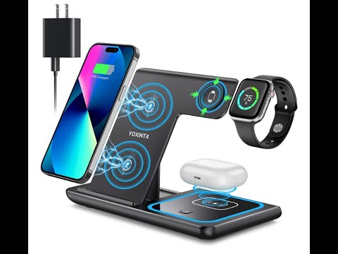 You can charge your apple products simultaneously with this 3-in-1 wireless charger stand. It charges your iPhone, iWatch and AirPods at the same time.Powered by QC3.0 adapter (INCLUDED), the charging stand outputs up to 10W for phones, 5W for AirPods, 2.5W for iWatch. .